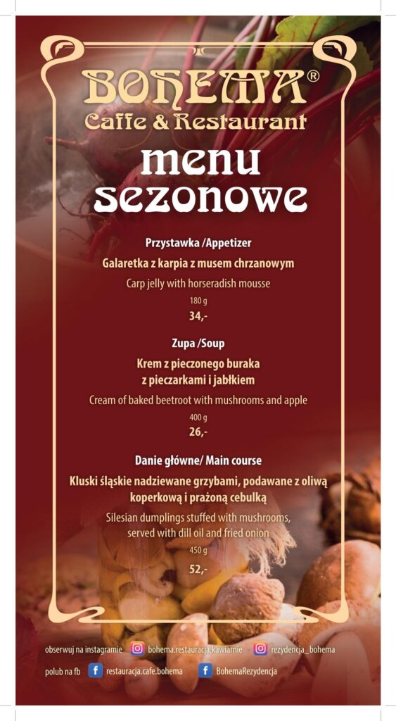 W naszej restauracji tworzymy wszystkie  dania w oparciu o sezonowość  i szacunek dla każdego produktu, który jest przez nas wykorzystywany. Wszystkie składniki są dokładnie selekcjonowane i przetwarzane w naszej kuchni od podstaw. Zawsze pamiętamy o naszych tradycjach i smakach którymi karmiły nas nasze mamy i babcie. Staramy się nadać temu wszystkiemu nowe kształty tak aby każda wizyta w naszej restauracji była czymś więcej niż tylko  kolejnym zwykłym zjedzonym posiłkiem.